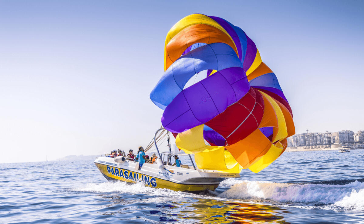 Je t'es sélectionné les incontournables pour profiter à fond de la Méditerranée!⸻ParasailingSurvole la côte et profite d’une vue incroyable sur l’île